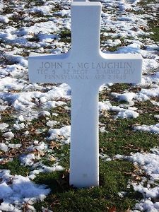 T/5 John T. Mc Laughlin was a messenger boy before he enlisted in Philadelphia, Pennsylvania on 29 January 1943.This is a story story about his death written by his younger sister from her school yearbook, The Garland 1946 from Little Flower Catholic High School in Philadelphia PA USA, send in by his niece Mrs. Anne McEligot.