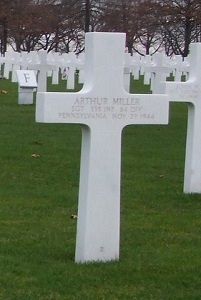 Sgt Arthur Miller enlisted in Philadelphia, Pennsylvania on 5 December 1942.Source of information: Peter Schouteten, Terry Hirsch, www.abmc.gov, www.wwiimemorial.com, www.archives.gov - WWII Enlistment Record, www.ancestry.com - Headstone and Interment Record / Veteran Compensation Application File, WWII Draft Cards, 1940 Census