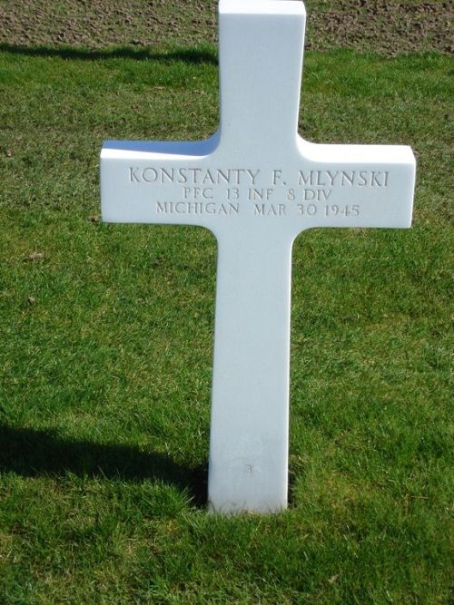 Pfc Konstanty F. Mlynski was employed by the Dodge Truck Corp.Source of information: Peter Schouteten, Terry Hirsch, Susan Milton, www.abmc.gov, www.wwiimemorial.com, www.ancestry.com - Headstone and Interment Record, WWII Draft Cards, 13 th Regiment Book from the Bangor Public Library in Maine