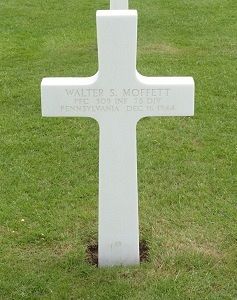 Pfc Walter S. Moffett enlisted in Allentown, Pennsylvania on 4 September 1942.Source of information: Peter Schouteten, www.abmc.gov, www.wwiimemorial.com, www.archives.gov - WWII Enlistment Record, www.ancestry.com - 1930/1940 Census / Veteran Compensation Application File