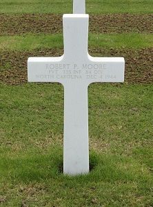 Pvt Robert P. Moore enlisted in Camp Croft, South Carolina on 2 December 1942.Source of information: Peter Schouteten, Terry Hirsch, www.abmc.gov, www.wwiimemorial.com, www.archives.gov - WWII Enlistment Record, www.ancestry.com - Headstone and Interment Record / 1930/1940 Census / WWII Draf Card Young Men,