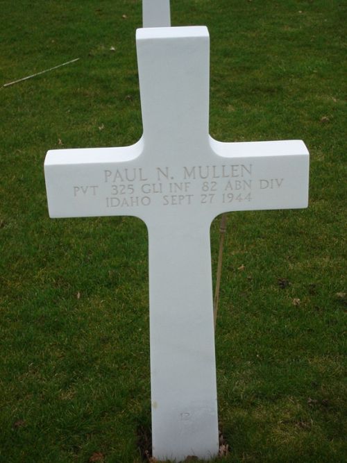 Pvt Paul N. Mullen enlisted in Boise, Idaho on 22 December 1943.Source of information: Peter Schouteten, Susan La Serna (niece), www.abmc.gov, www.wwiimemorial.com, www.archives.gov - WWII Enlistment Record, www.ww2-airborne.us, www.findagrave.com - Kathy, www.ancestry.com - Headstone and Interment Record / Family Tree