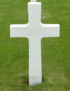 Pfc Chester E. Nettleship was a sheet metal worker for the Carroll Sheet Metal Contractors in New York.He was married to Mary Elizabeth Poe on 26 June 1941.