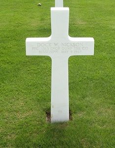 Pfc Dock W. Nickson enlisted in Shreveport, Louisiana on 23 December 1943.Source of information: Danny van der Groen, Terry Hirsch, www.abmc.gov, www.wwiimemorial.com, www.archives.gov - WWII Enlistment Record, www.ancestry.com - Headstone and Interment Record, WWII Draft Cards