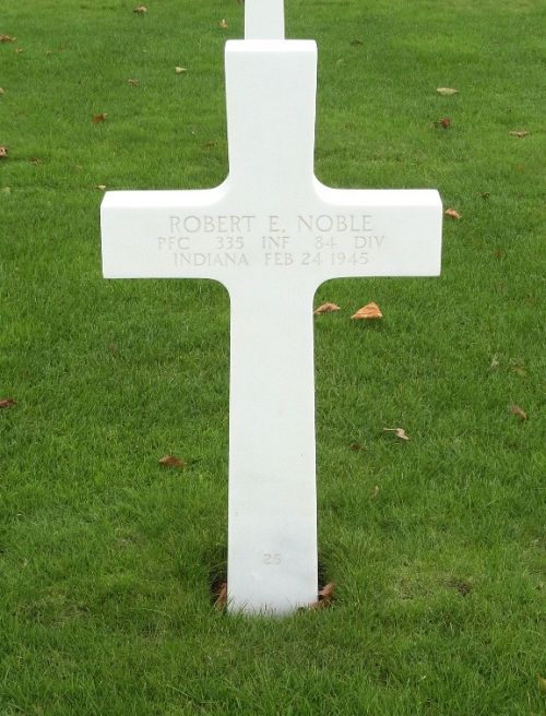 Pfc Robert E. Noble was employed as a machine operator for National Automatic Tool Company.He enlisted at Fort Benjamin Harrison, Indiana on 11 April 1944 and was sent overseas in October 1944.