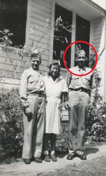 Pvt Clyde A. O'Neal enlisted in Baltimore, Maryland on 18 January 1943 and took his basic training at Atlantic City, New Jersey. He was later sent to Drew Field, Tampa in Florida. From Drew Field he went to De Ridder, Louisian, and then to Camp Livingston, Louisiana where he underwent six months training in the infantry. He was sent to Fort Meade in Maryland on 4 February 1945 leaving for overseas duty on 17 February. He landed in Belgium on 1 March 1945.On the picture he poses with his sister Bertha.