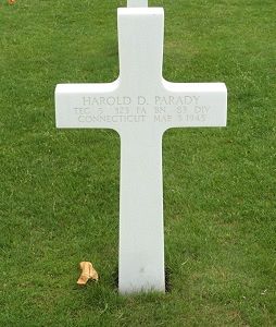T/5 Harold D. Parady enlisted in Hartford, Connecticut on 5 November 1942.Source of information: Peter Schouteten, www.abmc.gov, www.wwiimemorial.com, www.archives.gov - WWII Enlistment Record, http://83rdinfdivdocs.org, www.ancestry.com - 1930 census / WWII Draft Cards Young Men / Heller McBain Family Tree