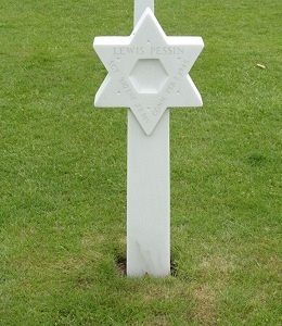Sgt Lewis Pessin graduated from Weaver High School where he was a soloist in the A Capella Choir. He was attending Bard College when he volunteered for the Air Corps of the Army of the United States in Hartford, Connecticut on 12 November 1942. After nine months in the Army Specialized Training Program at Yale and Boston University, he was transferred to the infantry and was sent overseas in October 1944.His cousin Harold L. Pessin was killed on 16 January 1945 in France and is buried at Lorraine American Cemetery in St. Avold, France.