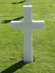 Pfc Arthur Petruzzello had seen action during the North African campaign where he was taken prisoner. He was released when the prison ship on which he was held was retaken by Allied forces.His brother T/Sgt Mario Petruzziello was killed in January 1945. He is buried at the American Military Cemetery and Memorial of Ardennes.