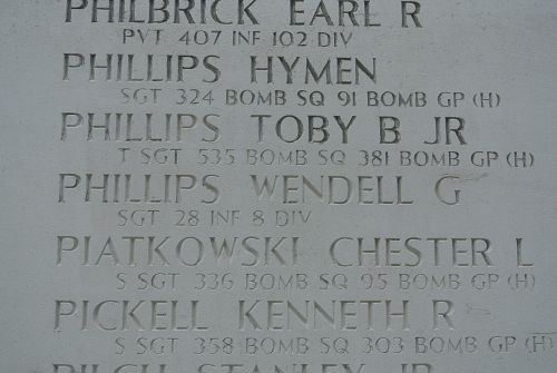 Sgt Wendell G. Phillips was a laborer before he enlisted in Detroit, Michigan on 11 July 1941.He was declared officially dead one day and one year after he was reported missing in action.