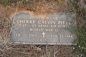 1st Lt Cherry C. Pitts enlisted in Oklahoma City, Oklahoma, on 30 March 1942.Returning from their mission, some elements were mistakenly hit by British coastal gunfire as they crossed Great Yarmouth at 2200.
