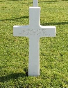 Pfc Michael Rapko enlisted in Philadelphia, Pennsylvania on 10 March 1943.Source of information: Danny van der Groen, Astrid van Erp, George M. Guise (nephew), www.abmc.gov, www.wwiimemorial.com, www.archives.gov – WWII Enlistment Record, www.ancestry.com – Headstone and Interment Record / Veteran Compensation Application File / Family Tree