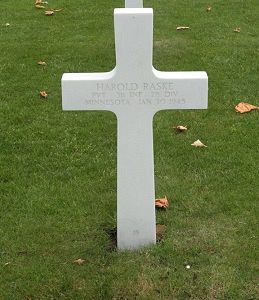 Pvt Harold Raske enlisted at Fort Snelling, Minnesota on 15 July 1944.Source of information: Peter Schouteten, www.abmc.gov, www.wwiimemorial.com, www.archives.gov – WWII Enlistment Record, www.ancestry.com – 1930/1940 Census / Birth Record
