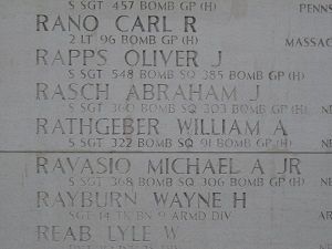 S/Sgt William A. Rathgeber enlisted in New York City, New York on 11 December 1941.A/C 483 was shot down and crashed into the Kiel Bay, North Sea. Four crew members ended up POW, the remaining six crewmembers were MIA/KIA.