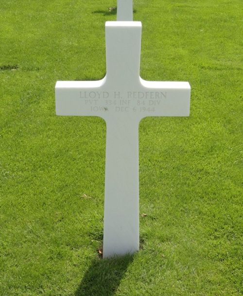 Pvt Lloyd H. Redfern enlisted at Camp Dodge Herrold, Iowa on 27 March 1944. He left for overseas duties on 8 July 1944.Source of information: André Koch, Astrid van Erp, www.abmc.gov, www.wwiimemorial.com, www.archives.gov - WWII Enlistment Record, www.ancestry.com - 1920/1940 Census / Headstone and Interment Record / WWII Bonus Case File, http://digicom.bpl.lib.me.us