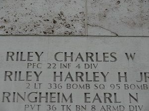 Pfc Charles W. Riley enlisted in Columbus, Ohio on 10 May 1943.Pfc Riley was officially declared dead one day and one year after he was reported missing in action.