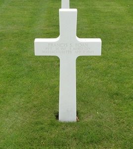 Pvt Francis S. Roan graduated from Taunton High School and was employed as a clerk at Corcoran Supply Company.He joined the Air Corps of the National Guard in Boston, Massachusetts on 25 November 1940. He was sent overseas in May 1943 as an armament specialist.