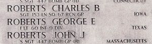 1st Lt George E. Roberts attended Texas A&M University with the Class of 1944.Source of information: Raf Dyckmans, www.abmc.gov, www.wwiimemorial.com, www.ancestry.com – 1940 Census