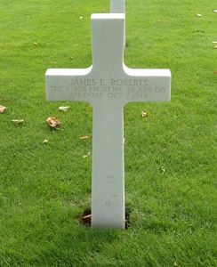 T/5 James E. Roberts enlisted on 4 March 1942.Source of information: Peter Schouteten, www.abmc.gov, www.wwiimemorial.com, www.archives.gov - WWII Enlistment Record, www.ancestry.com - 1930 Census / WWII Draft Card