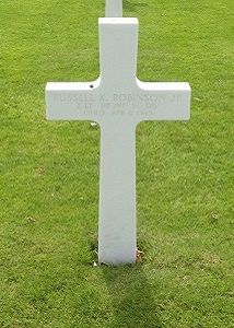 2nd Lt Russell K. Robinson Jr. attended college and was a manager before he enlisted in Cleveland, Ohio on 19 October 1942. He was sent overseas in November 1944 and reported wounded in action on 21 February 1945. After being hospitalized in France, he returned to his regiment on 10 April 1945 and was killed the next day.