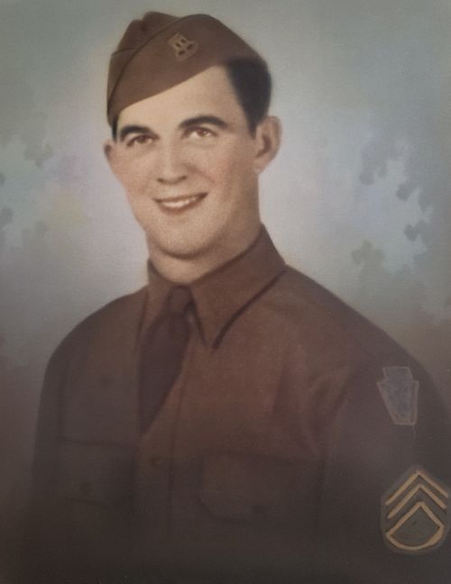 T/Sgt Angelo Roma joined the National Guard in East Stroudsburg, Pennsylvania on 17 February 1941. He received his basic training at Camp Livingston in Louisiana, trained at Camp Pickett in Virginia and Indiantown Gap, before being transferred overseas in October 1943.
