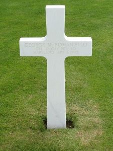 Cpl George M. Romaniello enlisted in New Cumberland, Pennsylvania on 13 January 1942.Source of information: Peter Schouteten, Terry Hirsch, www.fold3.com - WWII Draft Card, www.abmc.gov, www.wwiimemorial.com, www.archives.gov - WWII Enlistment Record, www.ancestry.com - U.S., Headstone and Interment Records for U.S. Military Cemeteries on Foreign Soil / Shipley Family Tree / 1940 Census, http://roermond1939-1945.nl