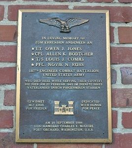 Pvt Novie N. Ross enlisted in Boise, Idaho on 18 October 1943.He was killed, together with three of his comrades, when a mine, that was stored in a barn next to the mill of Waldfeucht, exploded. This caused a chain reaction, causing fifty to sixty mines to detonate.