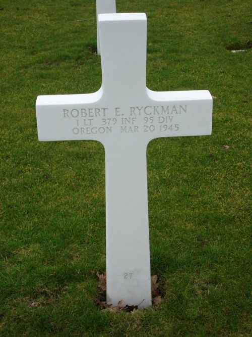 1st Lt Robert Ryckman had served for four years with the U.S. Marine Corps before he joined the Regular Army in January 1940. He graduated from Officer Training School at Fort Benning, Georgia in May 1943 and was stationed at Fort Ord, California before he was overseas in September 1944.At the time of his death, his brother Emmett served with the U.S. Marine Corps.