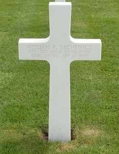 Pfc William P. Sachewicz enlisted in Newark, New Jersey on 15 June 1942. Both his parents were immigrants from Poland.Source of information: Peter Schouteten, Terry Hirsch, www.abmc.gov, www.wwiimemorial.com, www.archives.gov – WWII Enlistment Record, www.ancestry.com - Headstone and Interment Record / Family Tree, WWII Draft Card