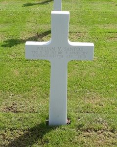 T/5 William V. Santos enlisted in Boston, Massachusetts on 19 November 1942.Source of information: Danny van der Groen, Terry Hirsch, WWII Draft Cards, www.abmc.gov, www.archives.gov - WWII Enlistment Record, www.wwiimemorial.com, www.ancestry.com - Headstone and Interment Records