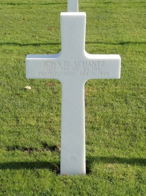 Sgt John D. Schantz enlisted in New Cumberland, Pennsylvania on 24 April 1944 and trained at Fort Sill, Oklahoma, Camp Maxey, Texas and Fort Meade, Maryland. He was sent overseas in December 1944.Source of information: Raf Dyckmans, André Koch, www.abmc.gov, www.wwiimemorial.com, www.archives.gov - WWII Enlistment Record, www.ancestry.com – various family trees, www.newspapers.com - Pottstown Mercury