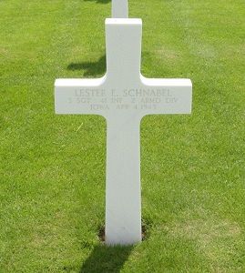 S/Sgt Lester E. Schnabel worked on a farm before he enlisted in Des Moines, Iowa on 22 June 1942.He is remembered at the Saint Johns Cemetery in Clarence, Cedar County, Iowa.