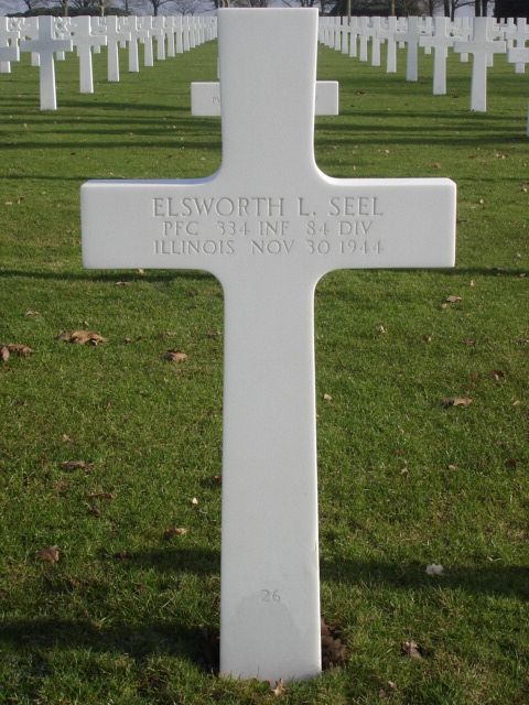 Pfc Elsworth L. Seel enlisted in Peoria, Illinois on 15 February 1943.Source of information: André Koch, www.abmc.gov, www.ancestry.com - Headstone and Interment Record, www.archives.gov - WWII Enlistment Record, www.findagrave.com, www.fold3.com - WWII Army and Army Air Force Casualty List, http://digicom.bpl.lib.me.us/ww_reg_his/89/