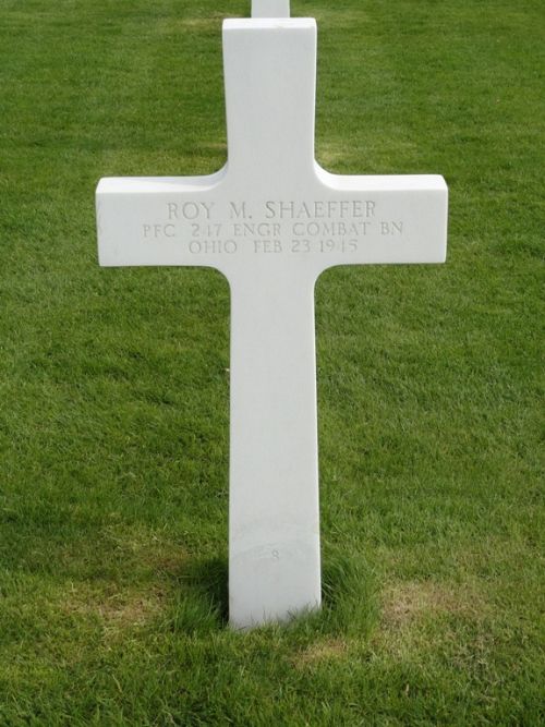 Pfc Roy M. Shaeffer graduated from Amanda High School in 1925 and attended Ohio University in Athens, Ohio. He was employed at Anchor Hocking Glass Corporation.He enlisted in Columbus, Ohio on 30 March 1943.