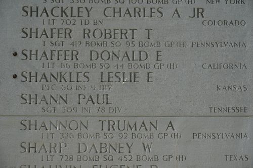 Thanks to new investigation methods, it turned out that the remains of an American soldier, found in 1947 by a local German resident in the Raffelsbrand section of the Hürtgen Forest and which could not be identified, and were buried as Unknown X-5391 at Ardennes Cemetery, were actually the remains of Pfc Shankles.