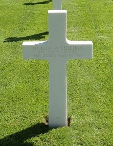 Pfc William V. Sheehan worked as a brakeman at the Penn Railroad Co. before he enlisted in Newark, New Jersey on 25 July 1944.Source of information: Leo Minne, Terry Hirsch, www.abmc.gov, www.wwiimemorial.com, www.archives.gov - WWII Enlistment Record, www.ancestry.com - Davis-DeAngelis-Reynolds-Giusto Family Tree / WWII Draft Cards / 1940 US Census / U.S., Headstone and Interment Records for U.S. Military Cemeteries on Foreign Soil, 1942-1949
