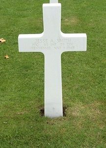Pfc Jesse A. Smith was a farmhand before he enlisted at Fort Oglethorpe, Georgia on 18 June 1942.He was killed by machine gun fire that struck him by accident.