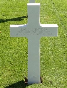 Pfc Jack L. Snyder enlisted in Allentown, Pennsylvania on 1 May 1943.Source of information: André Koch, Astrid van Erp, www.abmc.gov, www.wwiimemorial.com, www.archives.gov - WWII Enlistment Record, www.ancestry.com - U.S. Headstone and Interment Records / Veteran Compensation Application File