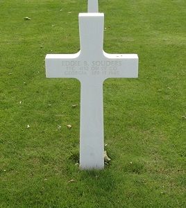 Pfc Eddie B. Souders worked in a chemical plant before he enlisted in Fort Benning, Georgia on 19 January 1943.Source of information: Raf Dyckmans, Peter Schouteten, www.abmc.gov, www.wwiimemorial.com, www.archives.gov – WWII Enlistment Record, www.ancestry.com - U.S., Headstone and Interment Records for U.S. Military Cemeteries on Foreign Soil