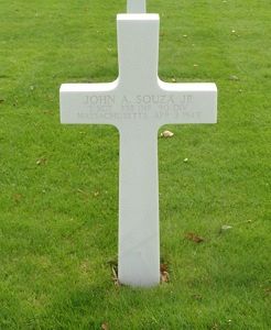 S/Sgt John A. Souza Jr. enlisted in Boston, Massachusetts on 28 April 1942.Source of information: Peter Schouteten, Terry Hirsch, www.abmc.gov, www.wwiimemorial,com, www.archives.gov - WWII Enlistment Record, www.ancestry.com - U.S., Headstone and Interment Records for U.S. Military Cemeteries on Foreign Soil / WWII Draft Cards / Massachusetts Births, 1841-1915 / 1930 Census