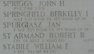 Maj Springfield was preceded in death by both parents. He lived with his aunt and her husband, William and Louise C. (Knoell) Bonnot, in Jersey City, He attended the University of Alabama in 1935.The airplane was shot down by enemy aircraft and crashed in the Baltic Sea. Six crew members were taken prisoner, and five were killed. The plane blew up before hitting the water. It had been on fire and seemed to be trying to ditch. No parachutes were reported from this plane.