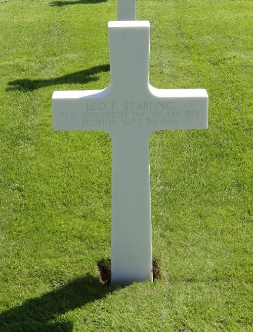Pfc Leo F. Starling enlisted in Camp Blanding, Florida on 28 October 1942.Source of information: Peter Schouteten, www.abmc.gov, www.wwiimemorial.com, www.archives.gov - WWII Enlistment Record, http://www.ww2-airborne.us/units/505/505_honor_st.html, www.findagrave.com - Linda Davis, www.ancestry.com - 1930 Census/1940 Census