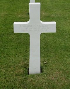 Cpl Edward F. Stewart graduated from St. Michael's High School in 1941, where he was assistant manager for two years and manager for one year of the basketball team.He enlisted while he was in his second year at Vermont Junior College in Rutland, Vermont on 17 March 1943 and was stationed at Camp Davis, Nort Carolina, and later was selected for the ASTP program en sent to MIT in Cambridge, Massachusetts for six months. When this program was discontinued, he was transferred to a glider regiment and was stationed at Camp Forrest in Tennessee until he was sent overseas in August 1944.