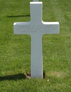 Pfc Edward R. Stoneberg enlisted in Newark, New Jersey on 19 March 1941. He was sent overseas in December 1943.According to a newspaper article, Pfc Stoneberg was a member of a squad assigned to night patrol in a truck. His truck was ambushed by the enemy.