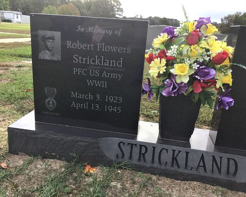 Pfc Robert F. Strickland enlisted at Fort Bragg, North Carolina on 21 August 1944.Source of information: Peter Schouteten, www.abmc.gov, www.wwiimemorial.com, www.archives.gov - WWII Enlistment Record, http://83rdinfdivdocs.org, www.ancestry.com - Headstone and Interment Record / Family Trees / 1930 Census