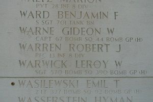 Pfc Warren was last seen laying with five others on the banks of the Roer River after being shot at by German soldiers on 15 February 1945.