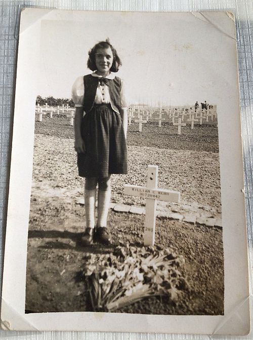 Pfc William C. Webb graduated from Kelvyn Park High School in 1940.On one picture, Eugenie Sipers-Bisscheroux, 10 or 11 years of age at that time, poses at the temporary grave of Pfc Webb when the Cemetery still had a temporary status. She is wearing a dress she received from the USA from Jack Campbell. He was a soldier who was stationed for a while in the meadow of her childhood home and called her "my little sister". Eugenie was born in 1935 and died in 2023.