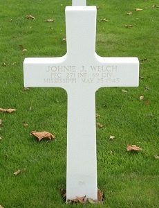 Pfc Johnie J. Welch enlisted at Camp Shelby, Mississippi on 13 July 1944.Source of information: André Koch, Terry Hirsch, www.abmc.gov, www.wwiimemorial.com, www.archives.gov - WWII Enlistment Record, www.ancestry.com - 1930/1940 Census - U.S. Headstone and Interment Records, www.fold3.com - U.S. WWII Draft Cards Young Men