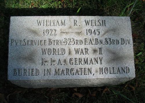 Pvt William R. Welsh was employed at the Monongahela Railway Company and White Line Taxi.He enlisted in Pittsburgh, Pennsylvania on 29 September 1942.