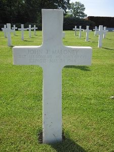 2nd Lt John J. Maloney, Jr. was a machine operator before he enlisted in Peoria, Illinois on 16 September 1942. He was sent overseas in January 1944.This was the roughest mission of the 401st Bombardment Group's tour in the ETO. The Group furnished the Low Box of the 94th Combat Wing and was chosen as the focus of attack by approximately 200 enemy fighters. The attacks lasted for 40 minutes, from the I.P. through two runs at the target. As many as 60 enemy aircraft attacked in formation, using saturation tactics. As a result, all of the High Squadron but the Lead Aircraft were shot down. A total of six Group aircraft were lost in the target area, while another was forced to ditch in the English Channel.